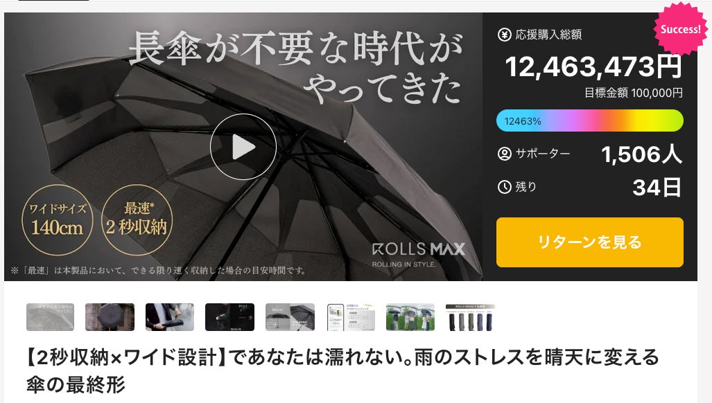 【公開初日に1200万円以上の応援購入】長傘に変わる新しい選択肢。雨のストレスを晴天に変える折りたたみ傘『ROLLS MAX』が日本の傘への価値観を変える