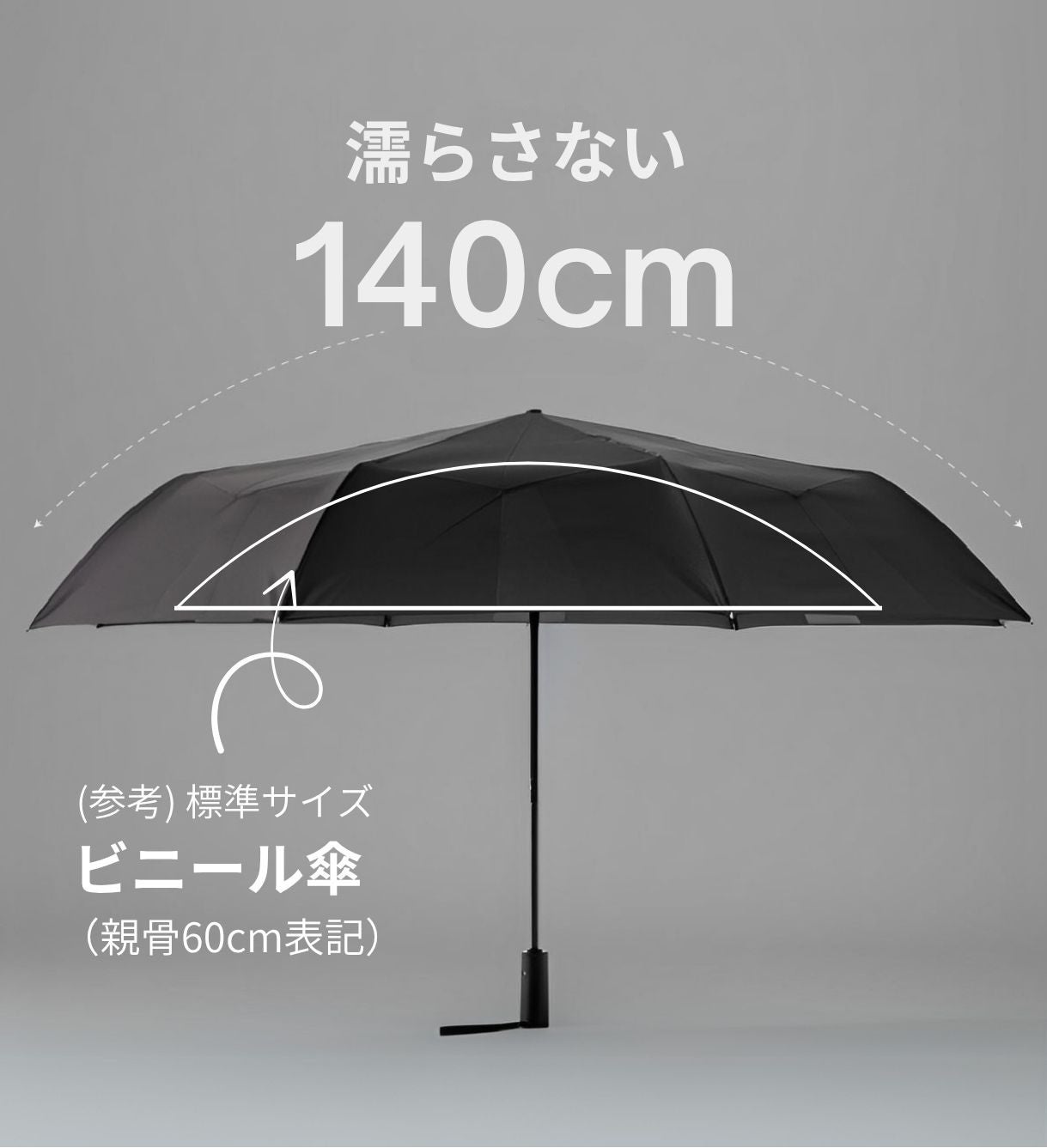 長傘より大きい140cmワイドサイズで「濡らさない」を徹底的に