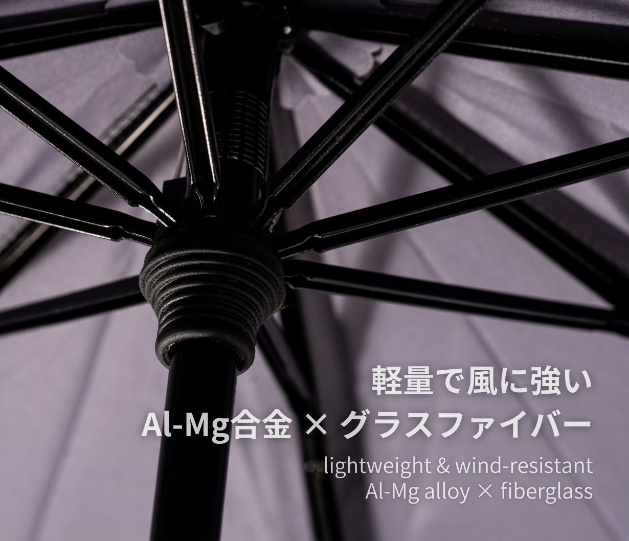 傘骨の素材:グラスファイバー、アルミ・マグネシウム合金、防錆メッキ処理
