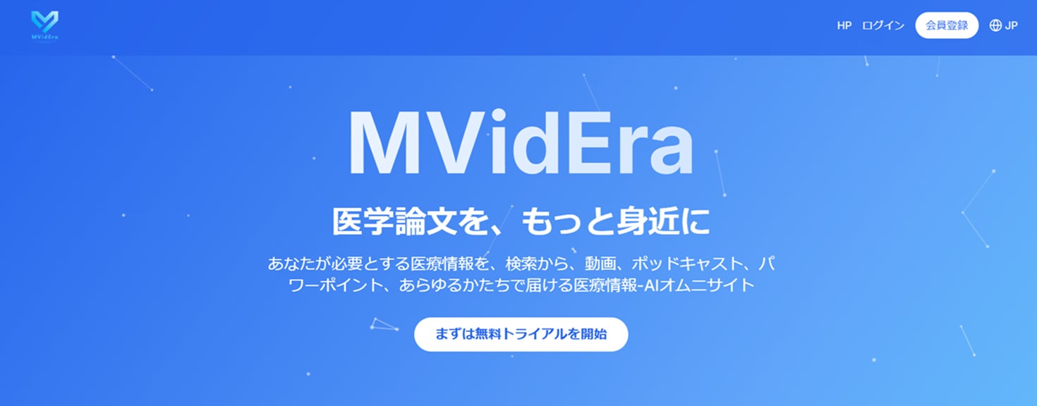 株式会社MU(本社:群馬県高崎市、代表取締役:村田悠典)は、当社が提供する医学論文-AIオムニサイト「MVidEra」に膨大な論文全文から、該当箇所を直接検索するAI 機能「スニペットサーチ」を新たに追加しました。また、併せて医学論文のAI要約動画を自動生成するシステムの開発にも成功しましたので、お知らせいたします。(公式YouTubeリンク:https://www.youtube.com/channel/UCmRS4PcWBYibQoZywxkPSeQ)