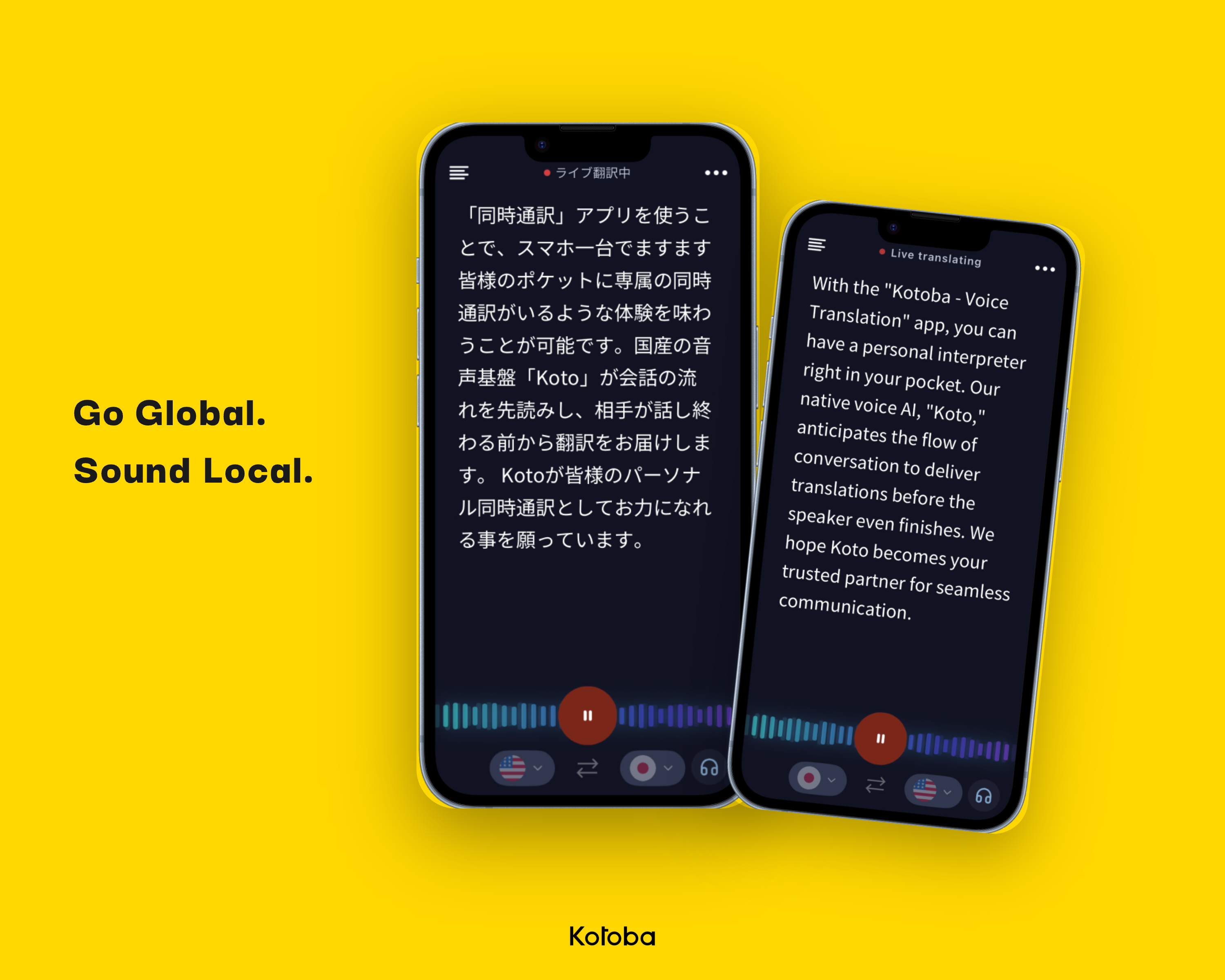 本サービスの開始にあわせて、「同時通訳アプリ」において、Kotobaの生成AIモデル 「Koto」を活用した日韓同時通訳モデルを正式リリースしました。 Kotoは、当社が独自に研究・開発した、音声から音声へ直接同時通訳を行うend-to-end型の生成AIモデルです。これにより、低遅延かつ高精度な同時通訳を実現し ています。言語構造の近い日本語と韓国語の間では、平均遅延約1〜2秒という、日英間を大きく下回る低遅延を維持しながら、高精度な翻訳が可能です。