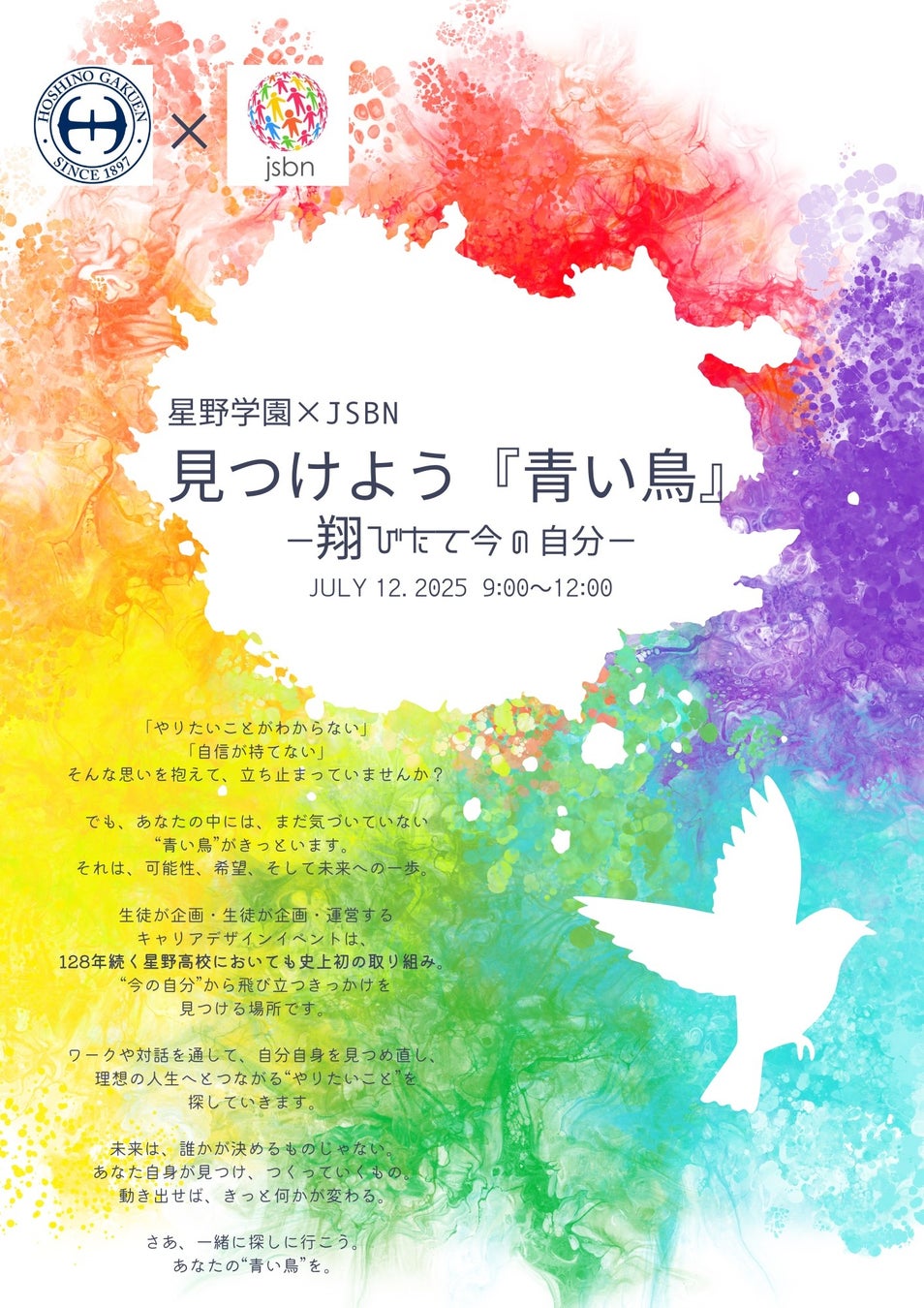 生徒が企画・運営するキャリアデザインイベントは、128年続く星野高校においても史上初の取り組み です。このイベントには、NPO法人JSBNが協力してくださっています。