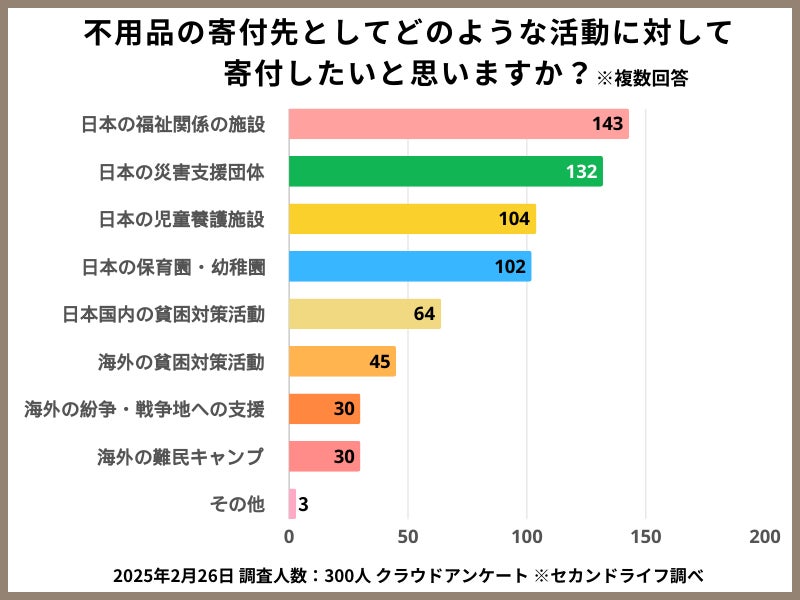もし不用品を寄付するとしたらどのようなところに届けてほしい?