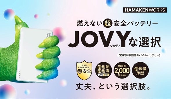 「Innovate Your Mobile Experience」をテーマに掲げ、スマートフォンの周辺機器を扱うHAMAKEN WORKS(ハマケンワークス)は、超高性能準固体モバイルバッテリー「SSPB(Solid State Power Bank)」(愛称:ジョヴィな選択)を2024年12月19日(木)から新製品として発売いたします。