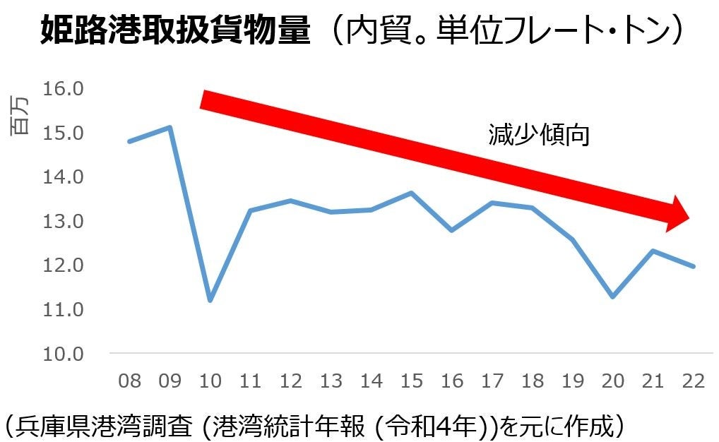 兵機海運様の主な貨物取扱い拠点である姫路港において、貨物取扱量は減少傾向にございます(出典:兵庫県)。兵機海運様の永続的な企業価値向上の道筋を考えた場合、現状の収益構造の延長線上でのビジネス推進には成長性に限界があると考えております。既存の取引先に依拠するのではなく、新たな商圏を開拓していく取り組みが必要と思われます。