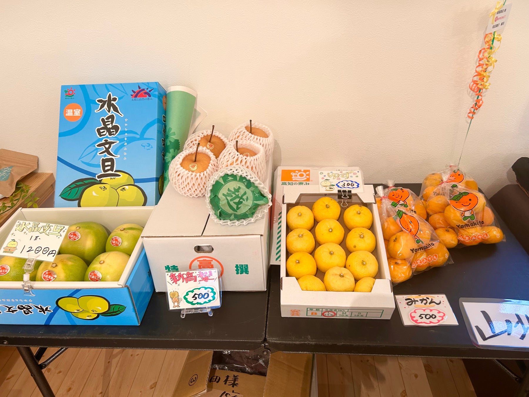 そのほかにも、ほうれん草、菊芋、レンコン、四方竹といった季節の地物野菜に加え、高知が誇る「水晶文旦」や「新高梨」「山北みかん」などのフルーツも豊富に揃い、見ているだけで季節の移ろいを感じられるラインナップです。すべての商品は1点から購入でき、県外発送にも対応しているため、地元の常連さんから遠方のファンまで、“高知の旬”を自宅の食卓へ届けることができます。