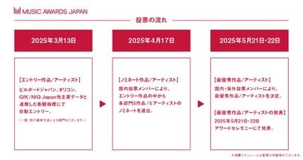 投票メンバーには、アーティスト、クリエイター、マネージャー、レコード会社スタッフ、エンジニア、MVディレクター、コンサートプロモーター、音楽出版社、著作権管理団体・事業者、音楽配信事業者、ディーラー、ディストリビューター、音楽評論家、ライター、メディア、 海外音楽賞審査員、海外クリエイター、海外プロモーター、海外音楽配信事業者など、各分野より構成される5,000名以上の音楽業界のプロフェッショナルを選出いたします。エントリー作品に関わるアーティストやクリエイターの皆様で、半数以上の割合となる予定です。