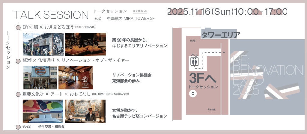 【11月16日開催】リノベーションの最前線が分かるトークセッションを無料公開!名古屋テレビ塔ホテル秘話など