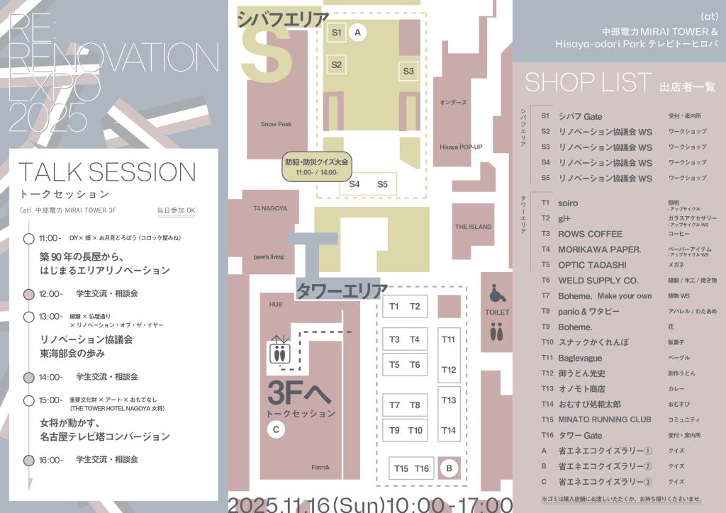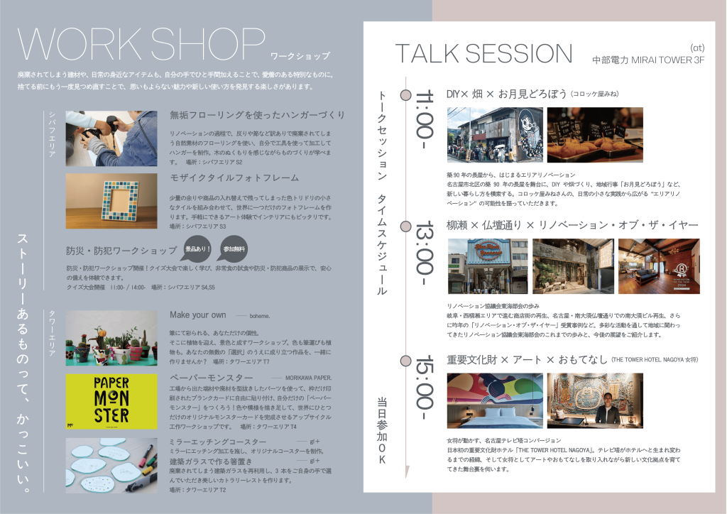このセッションは、リノベーションの知識を深めるだけでなく、「どんな暮らしを提供したいか」を考えるきっかけにもなります。全て中部電力 MIRAI TOWER 3Fで開催され、当日参加も可能ですが、予約フォームからのお申し込みをおすすめします!