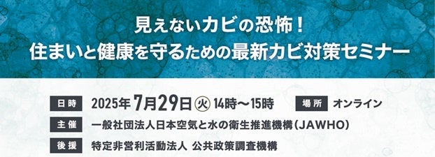 「空気と水」に関わる環境改善等の取り組みを通じ、人々の健康増進と経済活動の生産性向上に寄与することを目的に設立された一般社団法人日本空気と水の衛生推進機構(JAWHO)は、2025年7月29日(火)に第3回オンラインセミナーを開催いたします。