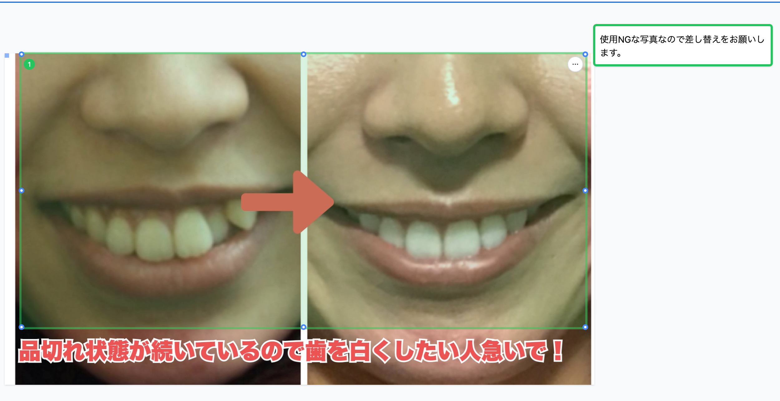 例えば、美容商材などで薬機法上リスクが高いとされる「ビフォーアフター画像(使用前後の比較)」などが動画内に含まれる場合、AIがそれを認識し、リスクの指摘を行います。