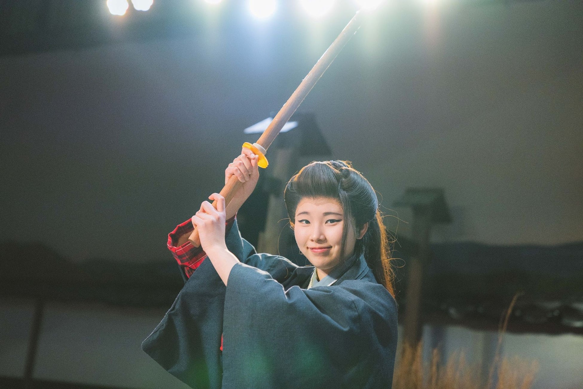 維穏さん: 高校生のときに「函館野外劇」という函館の歴史を伝えるボランティアの劇に参加したことがきっかけです。箱館戦争のシーンで殺陣を経験したときに、子どものころに時代村で見たアクションを思い出して、「やっぱりここでやりたい」と思ったんです。