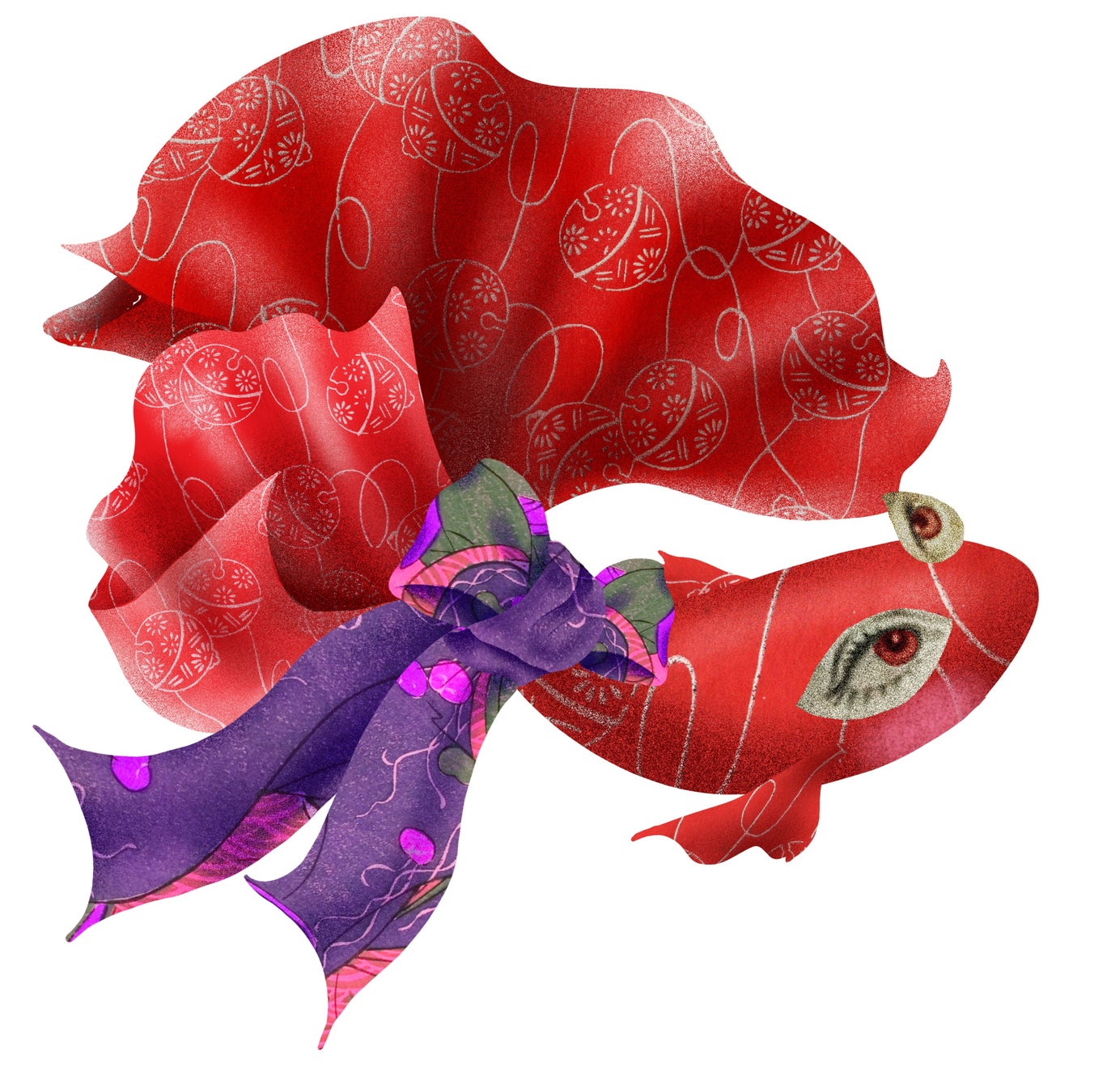 芸妓に見立てた金魚。街中を泳ぎ回ります。