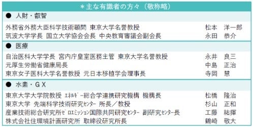 「三本柱」の検討に当たっては、品川から日本・世界に新たなソリューションをもたらす過程を通じて街の成長と日本の発展に寄与し続けることを目標とし、この街が担うべき役割を有識者*とともに検討しており、「人財・叡智」「医療」「水素・GX」の三本柱を軸としたイノベーション拠点の構築を目指します。