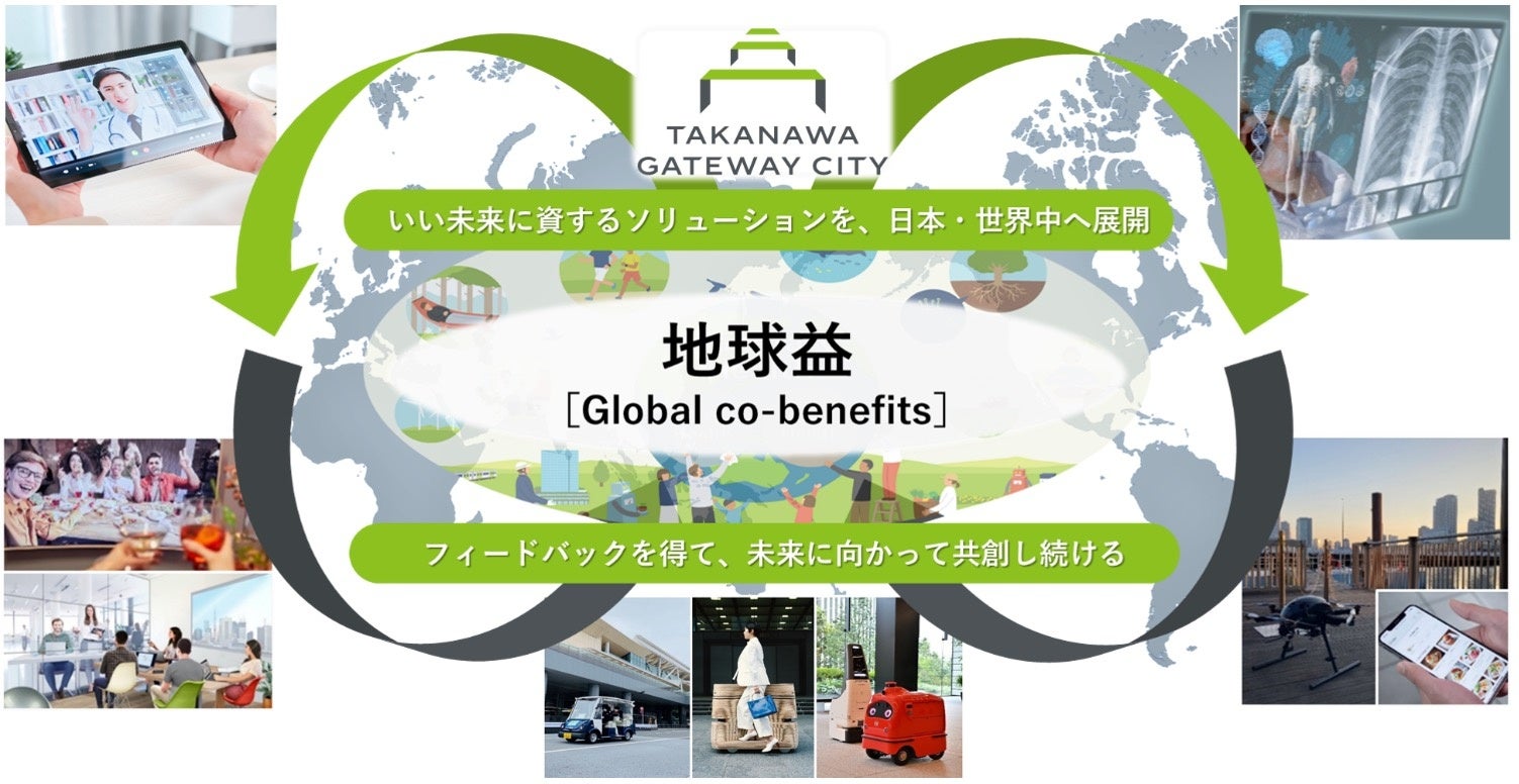 TAKANAWA GATEWAY CITYは地球が抱える様々な社会課題に対し、「新たなビジネス・文化」 「循環型社会のモデル」など、未来に資する解決策を街から生みだし、世界中へ発信していく拠点となります。日本各地や世界にイノベーションをもたらしながら、100年先の心豊かなくらしに向けた「地球益」の実現に取り組みます。