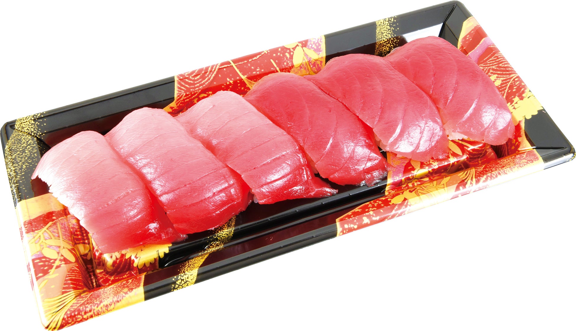 大起水産の看板商品。養殖の本まぐろの大トロ・中トロ・赤身がのったすし箱