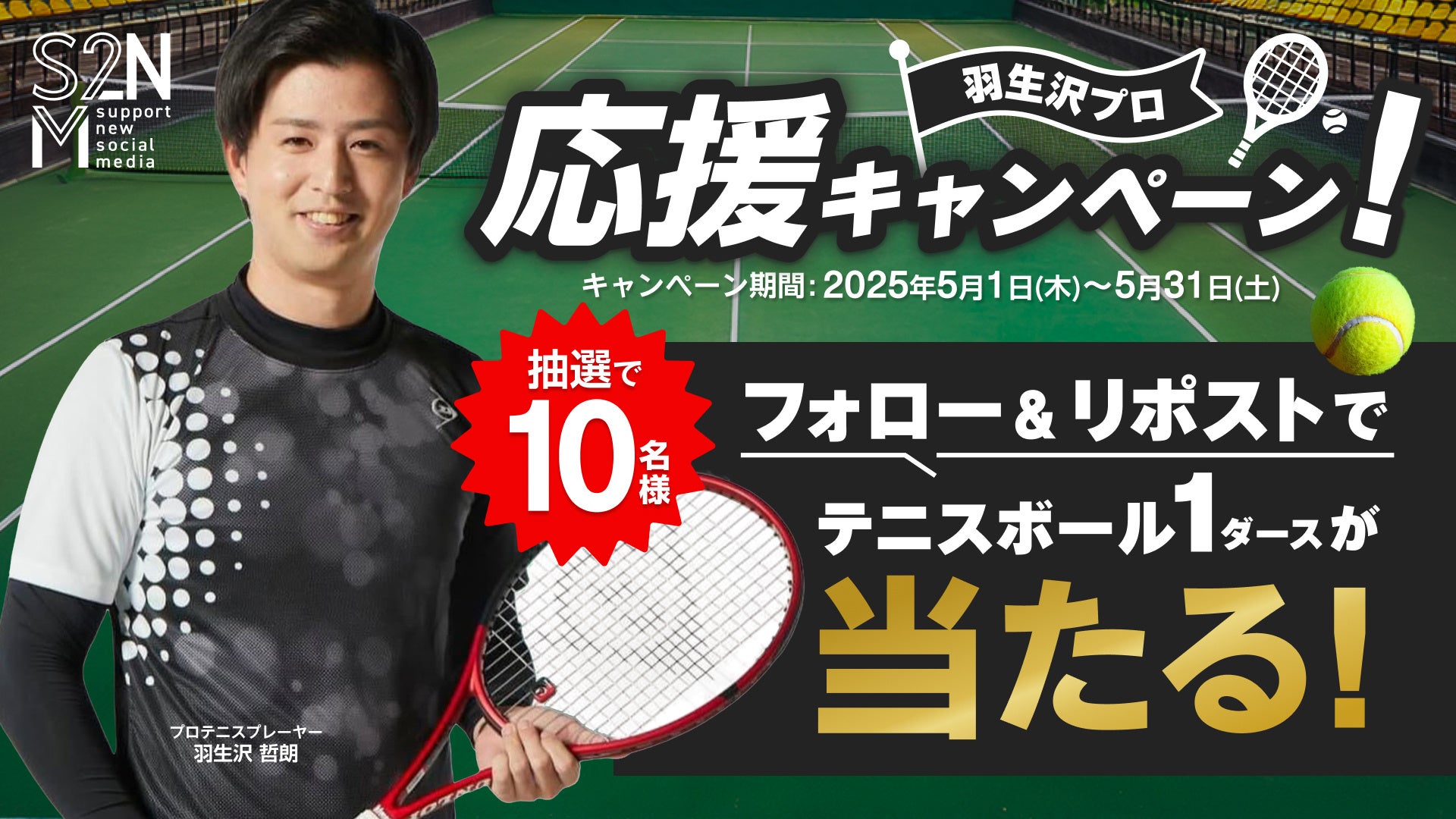 プロテニスプレイヤー羽生沢選手を応援しよう!テニスボール1ダースが当たるキャンペーンを開催!
