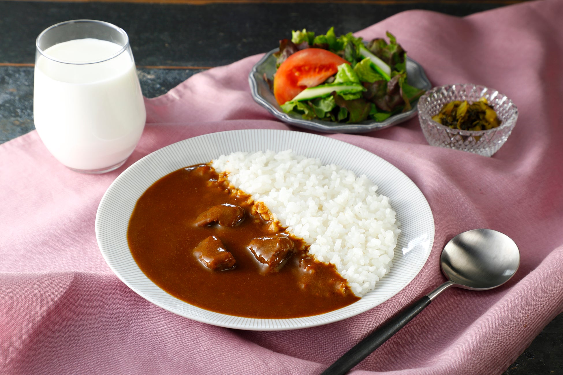 サラダと牛乳をセットで 現代風に海軍流を再現 今でも海上自衛隊は この習慣を続けています。