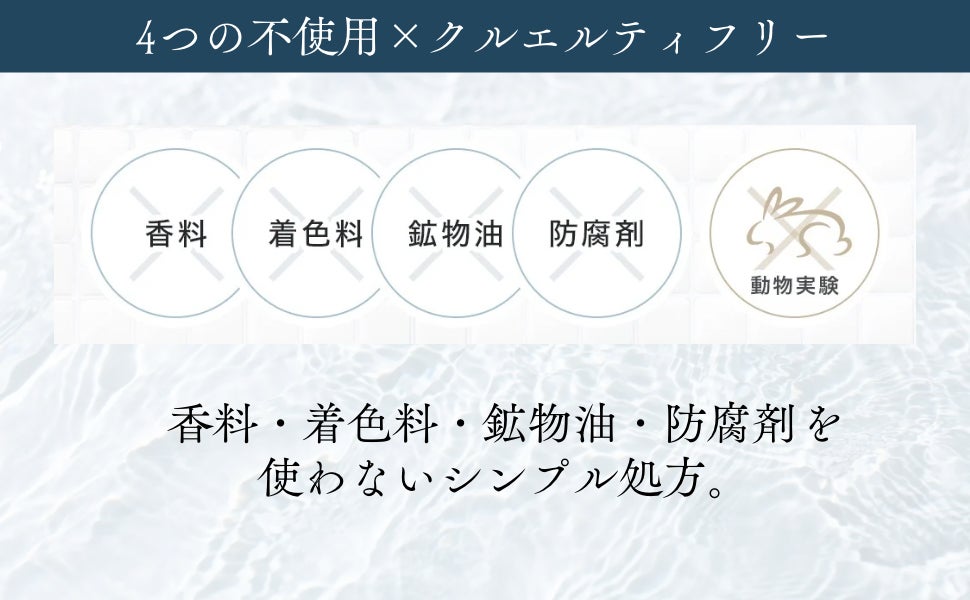 動物由来原料は不使用。原料選定から製造に至るまで、動物実験を一切行わないプロセスでつくられています。