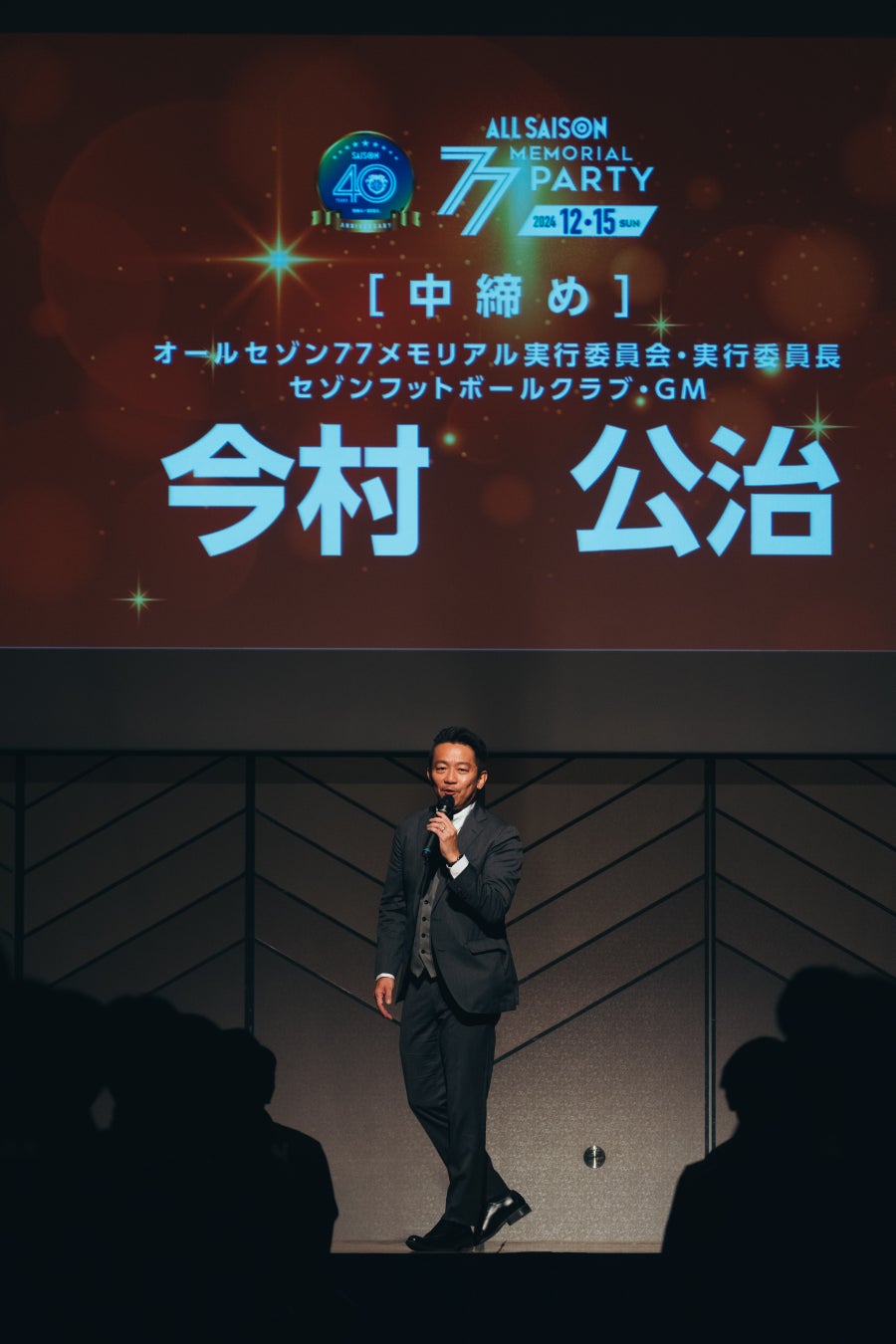 内容:式典(岩谷篤人総監督スピーチ、*オールセゾン77メモリアル感謝賞発表、OBスピーチ〈倉貫一毅/6期生、望月嶺臣/22期生〉、各セゾン紹介、今村公治GMスピーチ)、懇親会