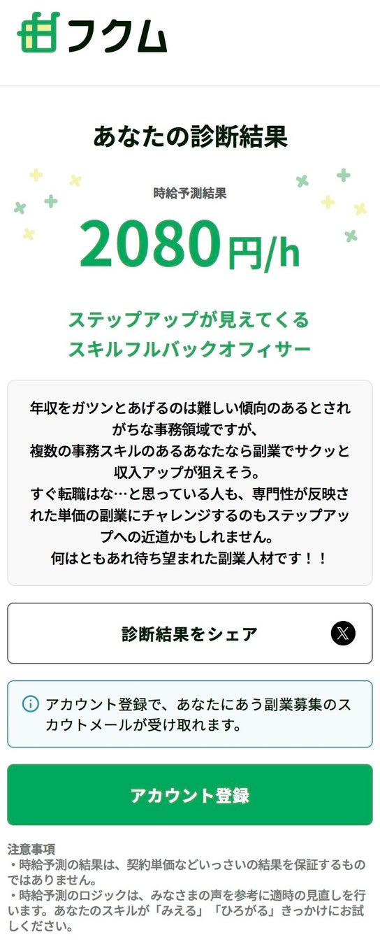 簡単にスキルを登録するだけでAIが時給を診断する機能も用意されています。