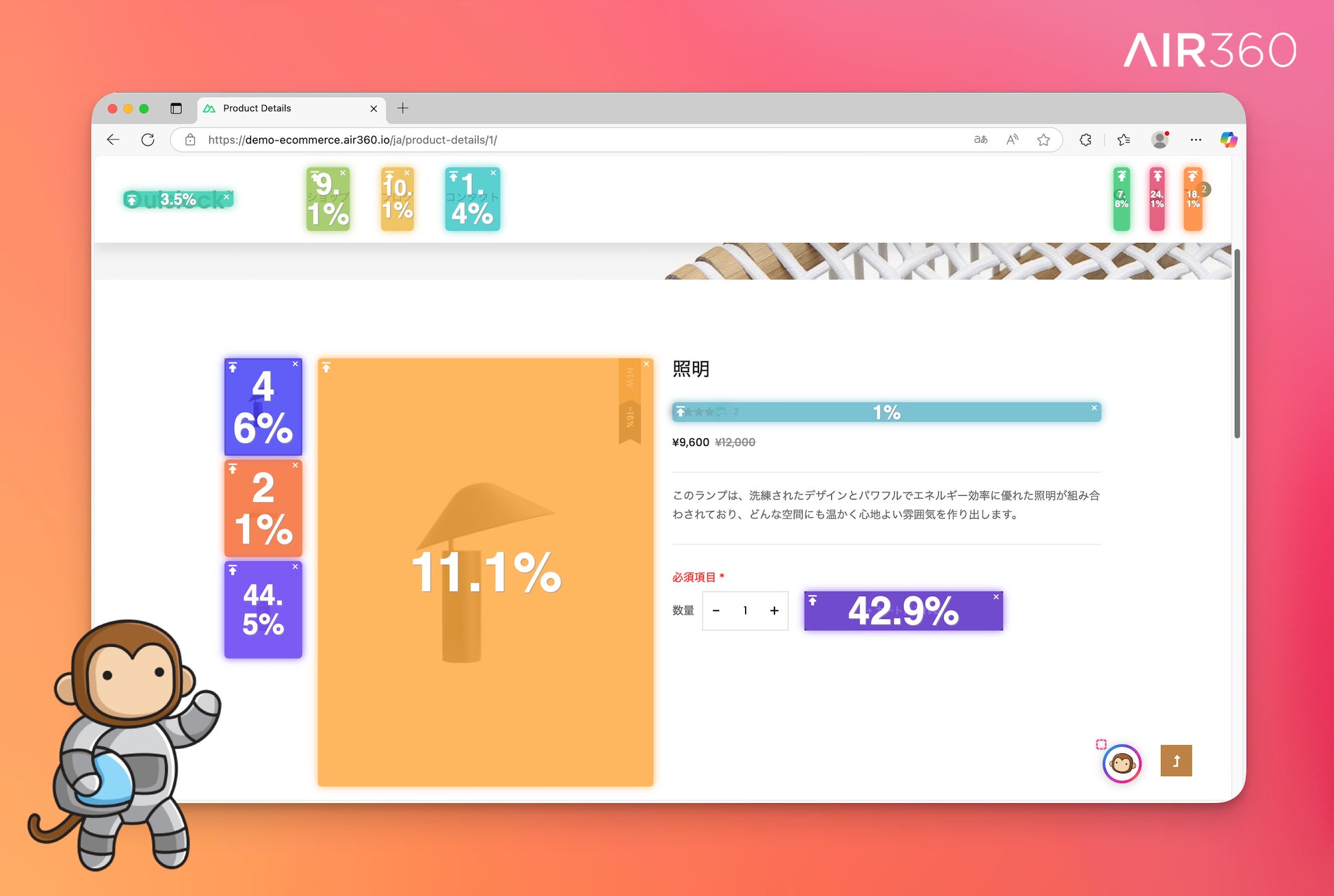 AIR360株式会社(本社:東京都千代田区、CEO:フロラン・ドゥフォンティス)はデジタル体験分析ツールAir360のページ上分析をより柔軟に行える機能を追加いたしました。新たなページ上分析機能によって、今まで以上にスムーズで柔軟にウェブサイトのページパフォーマンスの分析を可能にし、企業様のウェブサイトの購買率の向上をサポートします