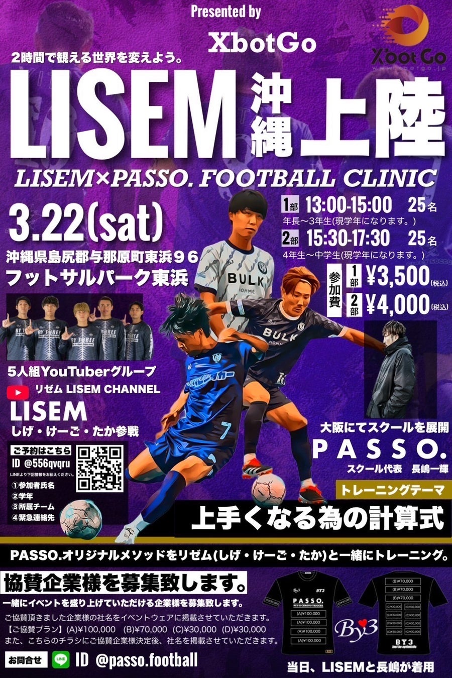 YouTube登録者数30万人超の人気サッカー系YouTuber「LISEM」と、大阪を中心にサッカースクールを展開する「PASSOフットボール」がタッグを組み、沖縄の子どもたちに上手くなるための効果的なトレーニング環境を提供します。