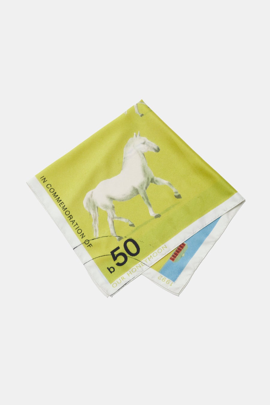 ヘアアクセサリーや首元のアクセントとしても、バッグのアクセサリーとしても、小包みとしても汎用性の高い正方形サイズのスカーフは、手に取るたびにあの懐かしい景色をここにあるかのように思いだし、心をくすぐります。