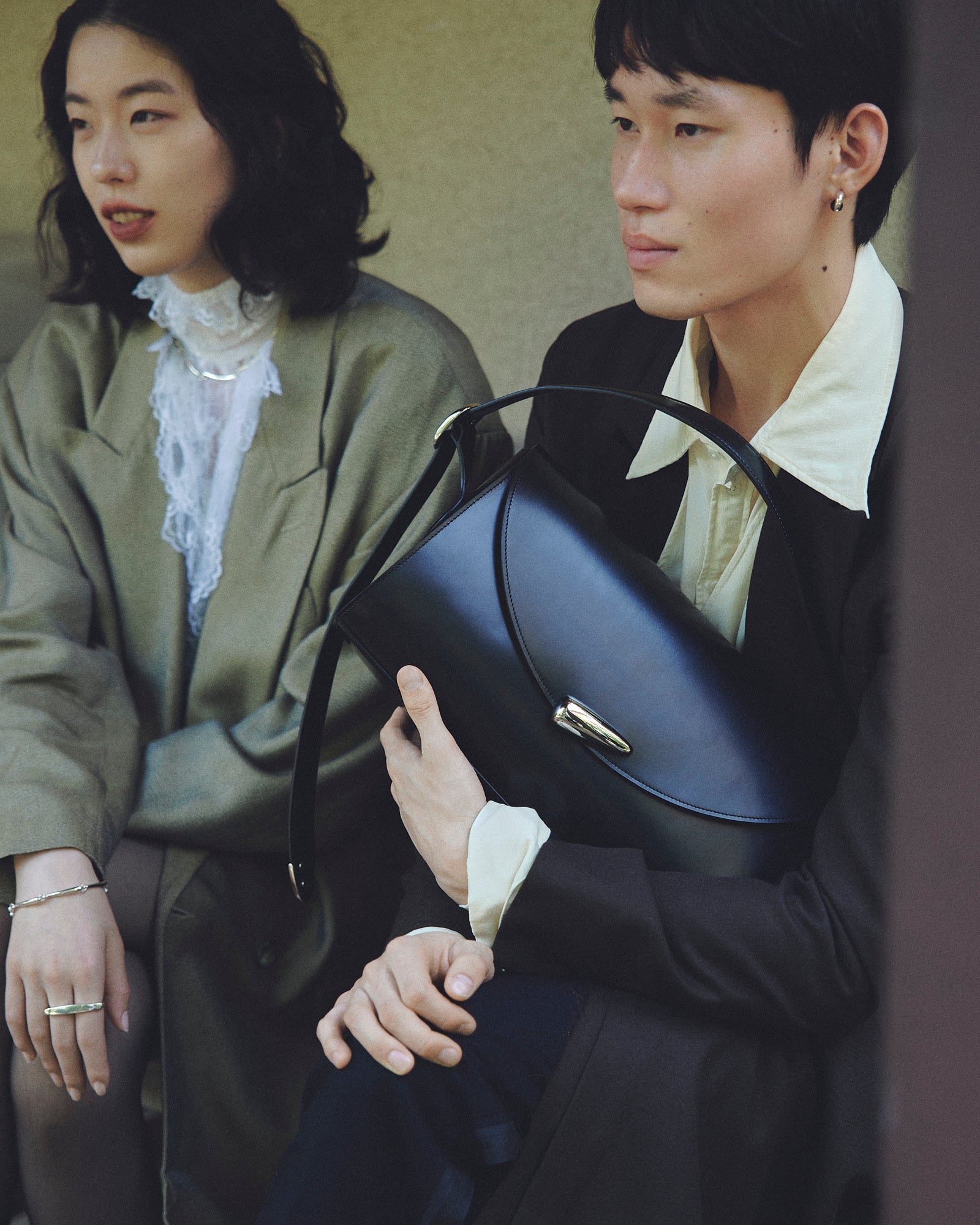 シルエットはミニマルながら、自然な艶感のある牛革を使用し、厚みとハリ感のある素材を使用することで上品さを演出しています。