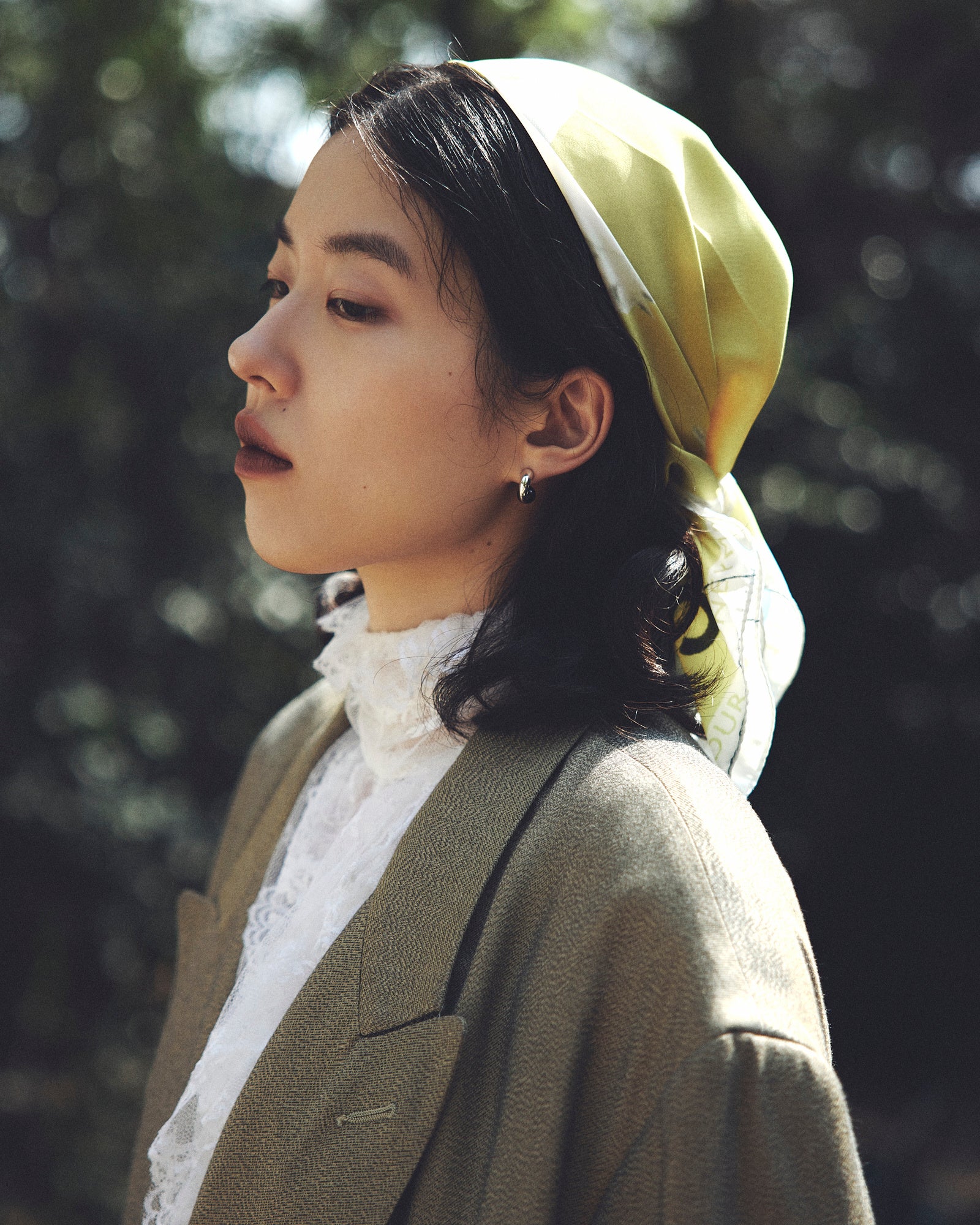 やや短めのサイズ感に仕立てたため、肌の上にそっと乗り、服にも顔にも寄りそうような付け心地に。