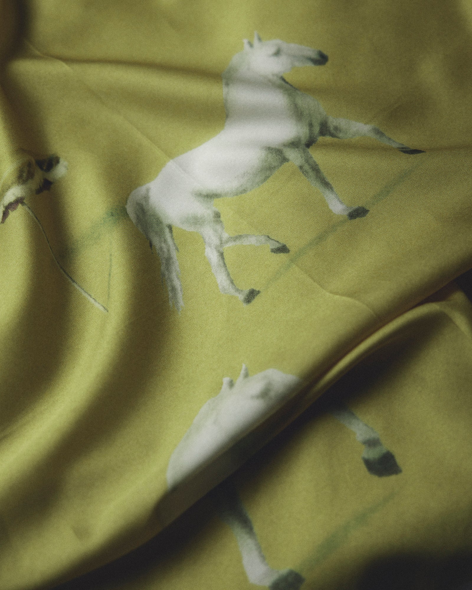 思い出の香るスカーフは、映像的絵画を目指し、時間・映写・記憶をテーマにした制作を続けるアーティストの加藤崇亮氏に制作をデザインを依頼。