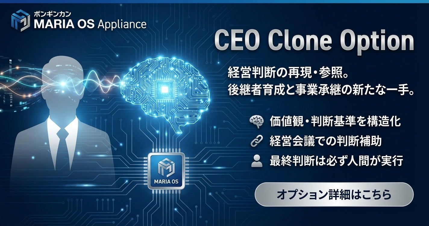 判断AIを社内に置く時代へ。オンプレミスAI判断OS「MARIA OS Appliance」提供開始。CEOの判断基準を再現する「CEO Clone」オプションも同時提供。