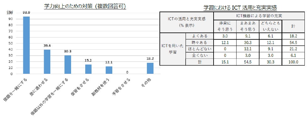 そのため、ICT活用による学習の充実実感は高くない結果となっており、在籍者の「勉強嫌い」や「学習意欲の低い状況」へ取り組める環境整備が必要であると考えられます。