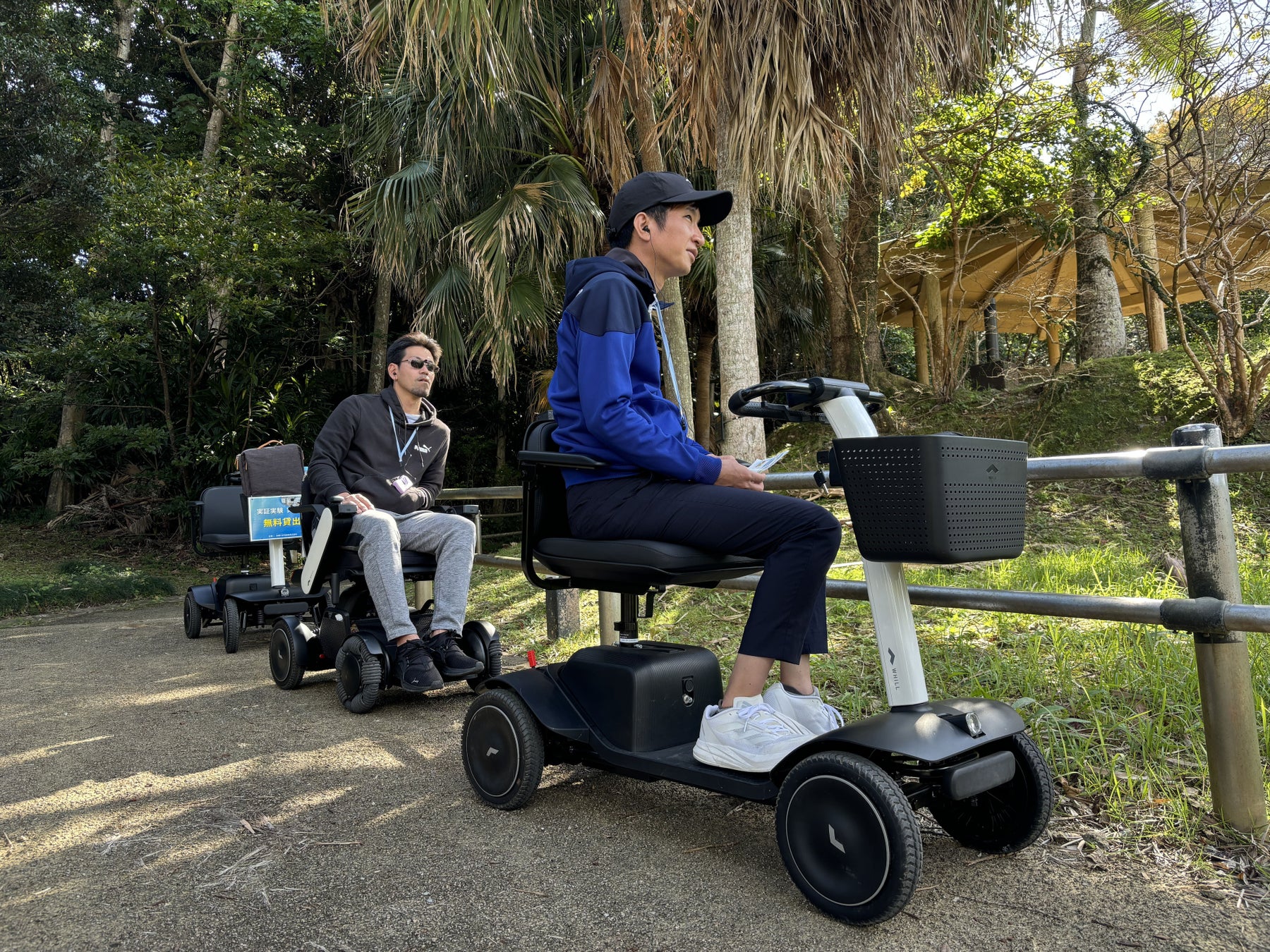 こうした背景を受け、地域のモビリティライフを多角的に支える沖縄トヨタはこの度、自社で取り扱う歩行領域のウィルを活用したモビリティサービスを、観光客が多く訪れるホテルゆがふいんおきなわと名護市観光情報センター(名護漁港内)の2スポットにおいて期間限定で提供するに至りました。ウィルは免許不要で歩行領域を走行するモビリティで、誰もが簡単に操作できます。一般的な車椅子と異なり、電動であるため走破性が優れているとともに、気軽かつ簡単に自身で操作がしやすいほか、高いデザイン性から観光先の景観などにも馴染みやすいです。