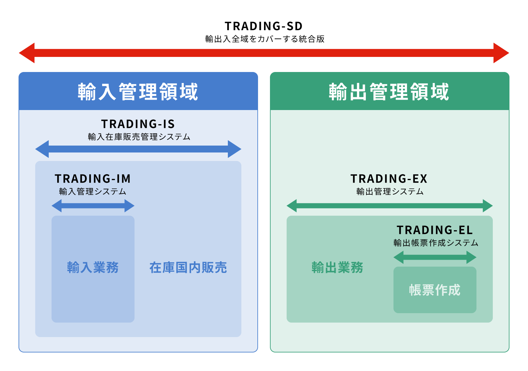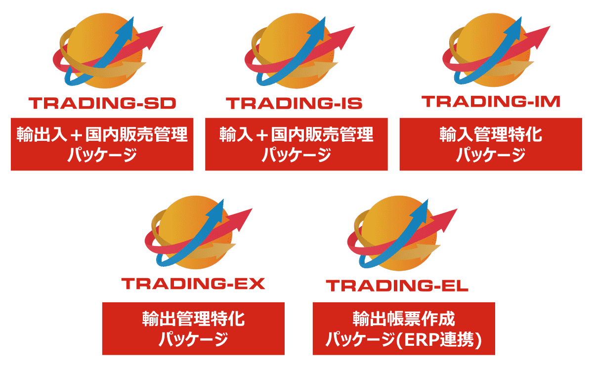 「TRADING」は、お客様の事業内容やご要望に応じて、5つの製品ラインナップからお選びいただけます。
