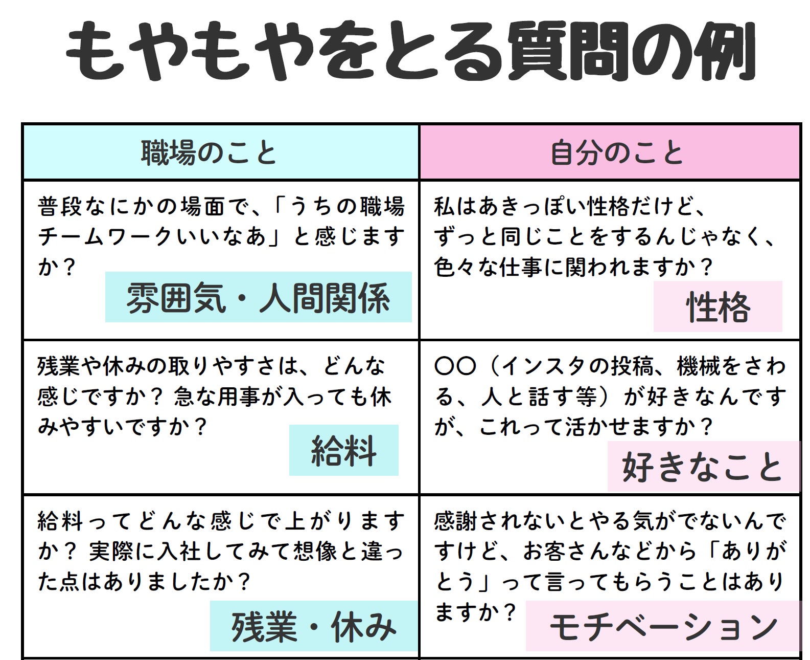 質問を通じて「こんな働き方があったんだ!」という発見を得るチャンス。