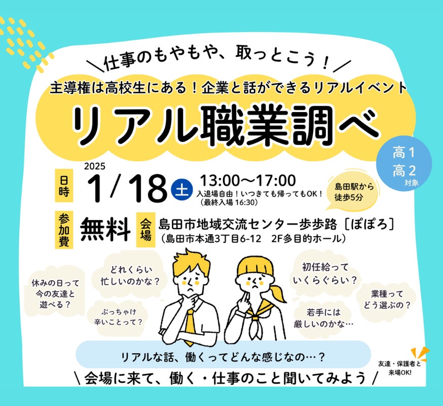 「就職・進学先選びで失敗しないために! 高校生向けキャリア探究イベント」 1月18日(土) 島田市で開催
