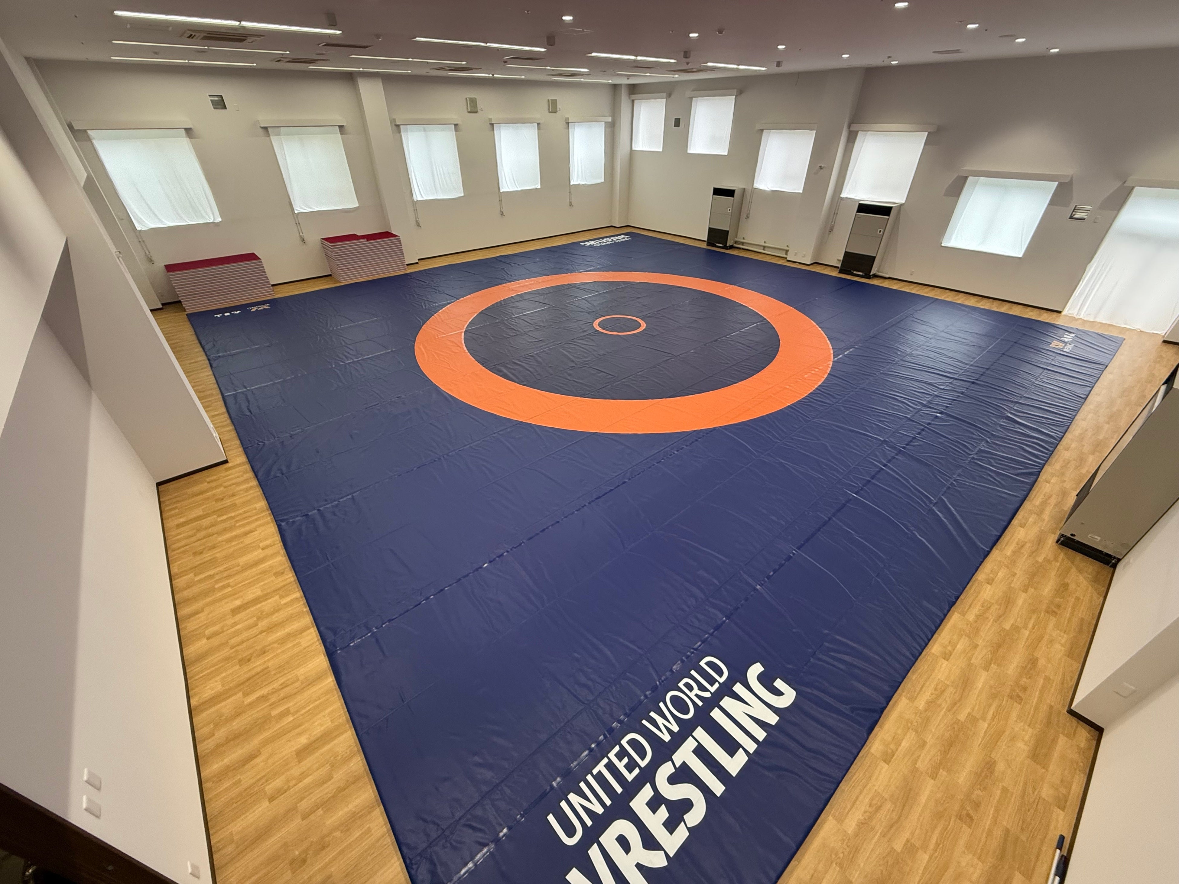 今回、さきがけとして、静岡県レスリング協会と協力し、レスリング公式マット2面分を導入いたしました。