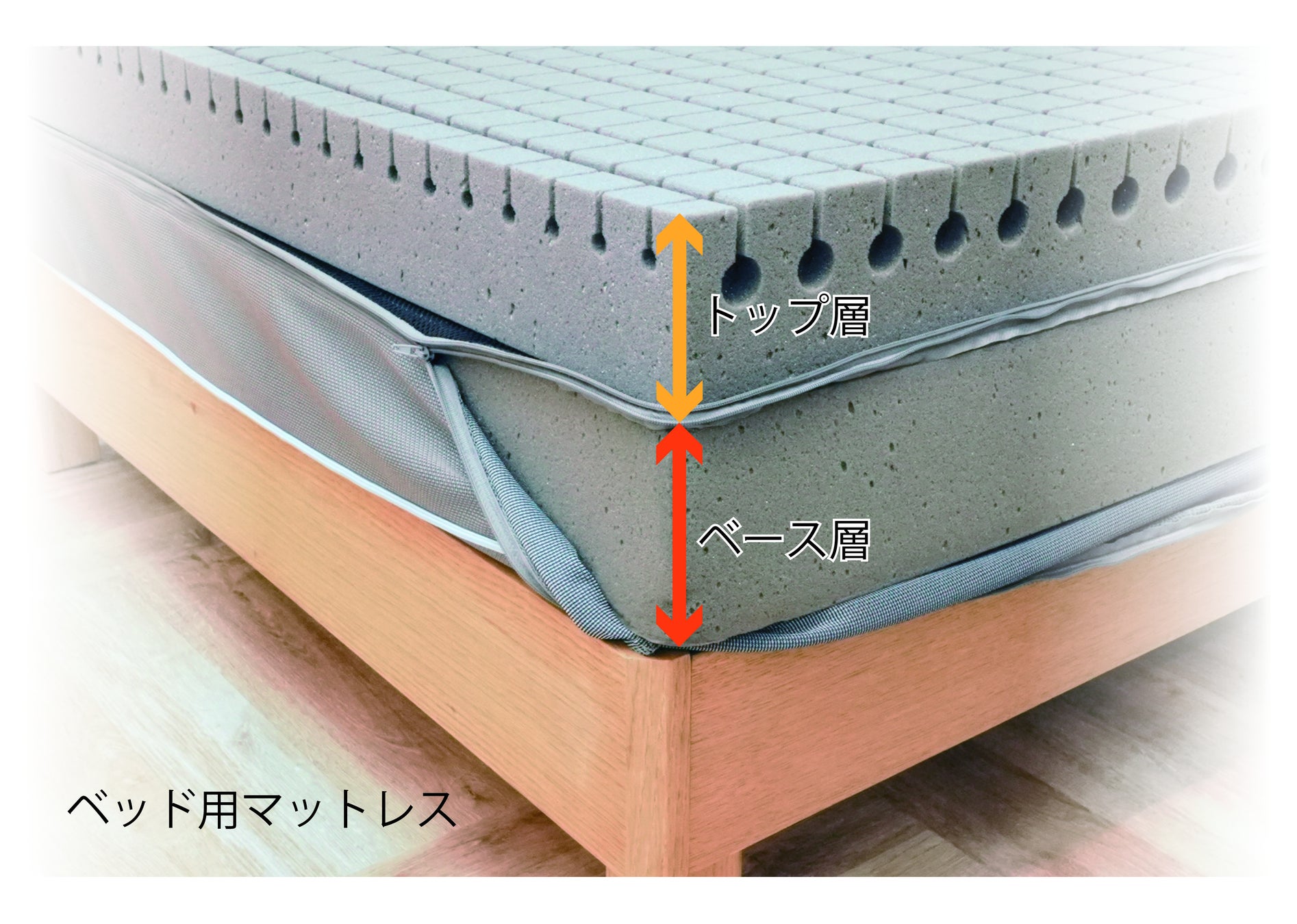 ベッド用は同じ規格のウレタンフォーム2層式構造で、トップ層とベース層に分かれています。