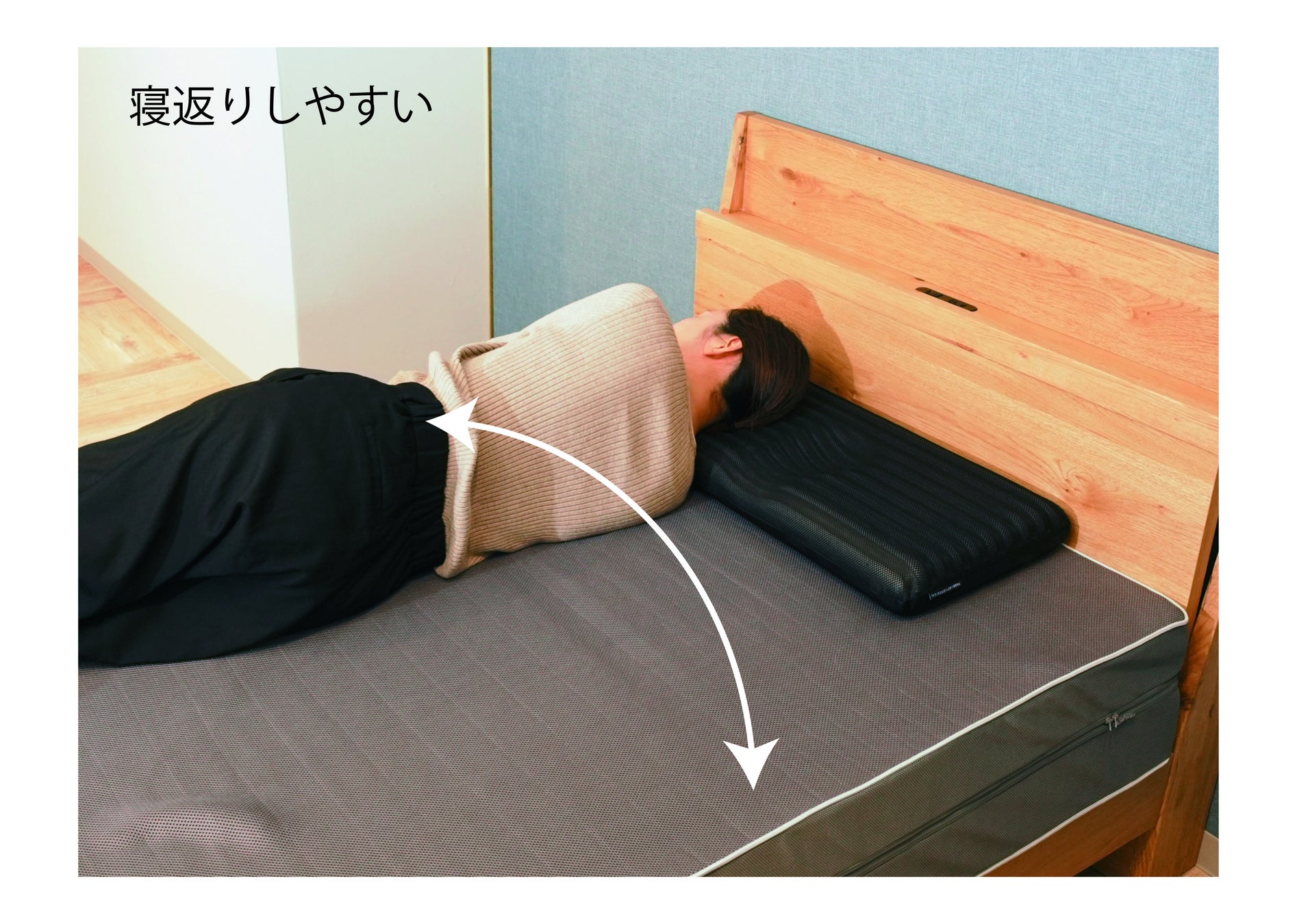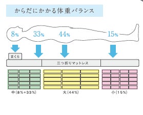 キューブでからだ全体を支えるので、寝返りがしやすく、肩部分の圧迫感を和らげます。