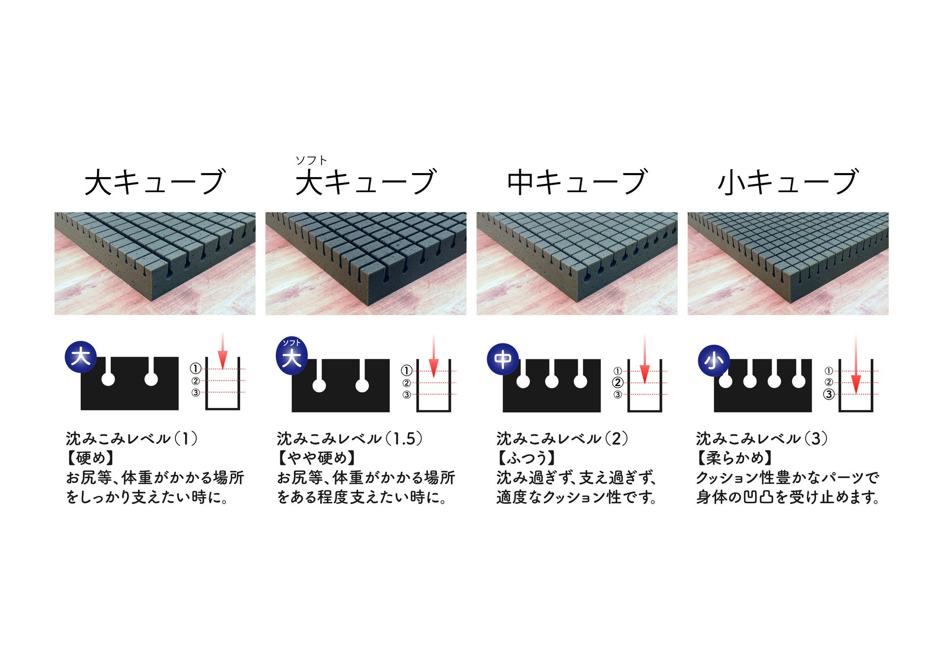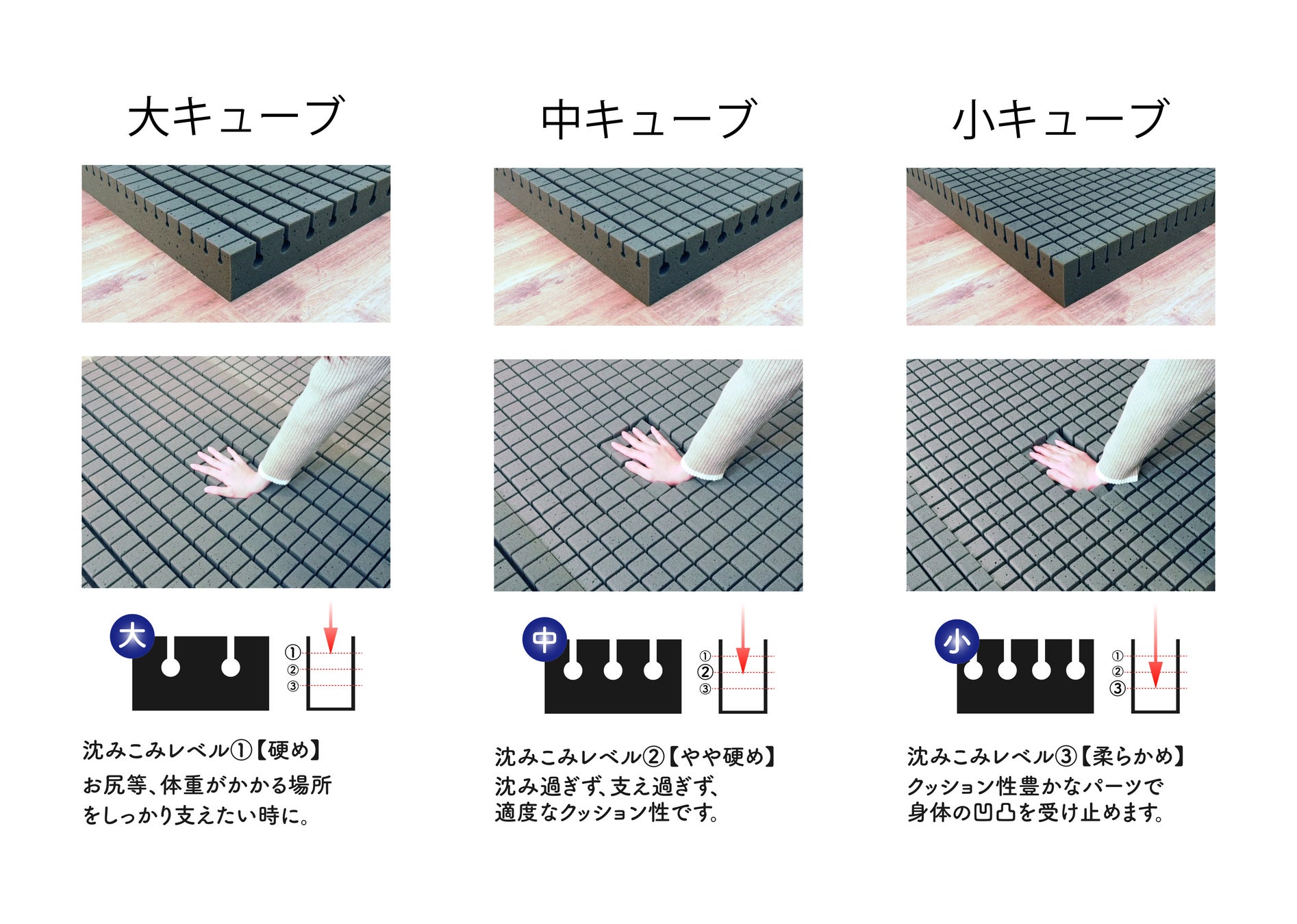 商品名:セミオーダーマットレス「キューブコンビネーション」(商標登録申請中)