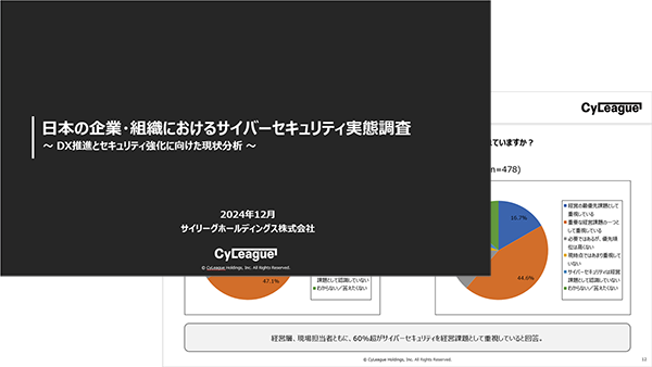 株式会社チェンジホールディングス(本社:東京都港区、代表取締役兼執行役員社長:福留 大士)の子会社でサイバーセキュリティ事業を推進する中間持ち株会社であるサイリーグホールディングス株式会社(本社:東京都港区、代表取締役社長:高谷 康久)は、日本の企業・組織におけるサイバーセキュリティの現状と課題に関する調査を実施し、その結果を本日発表しました。本調査は、2024年10月23日(水)から11月1日(金)にかけて、企業・組織の経営層およびIT/セキュリティ/リスク管理部門の現場担当者994名を対象にWebアンケート形式で実施されました。