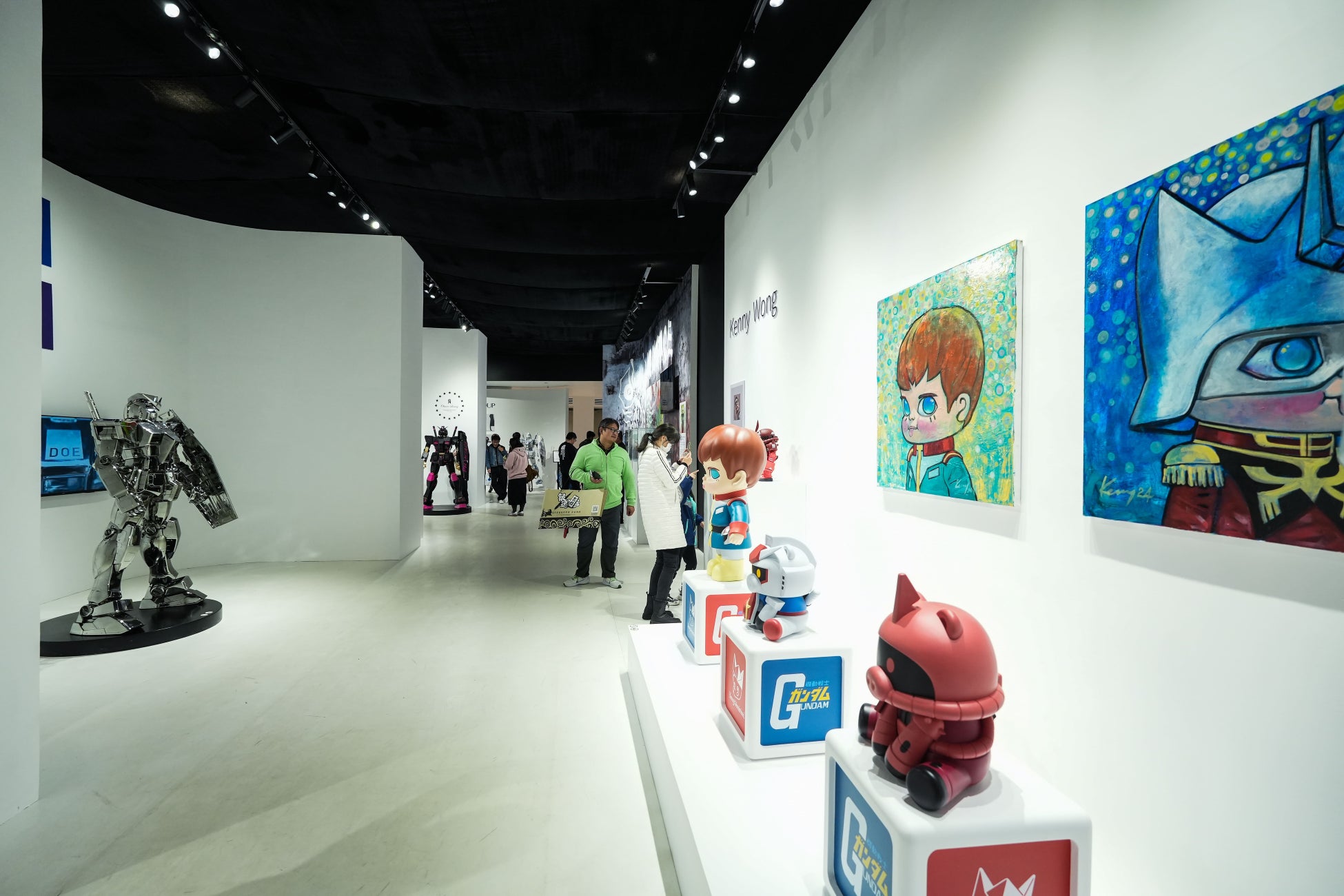 会場内では、アーティストそれぞれの視点で自由にガンダムを表現された作品が展示。Jay Chou氏のファッションブランドPHANTACIによる特別仕様ガンダム立像や、オリジナルキャラクター“Molly”が中国本土で大ヒットしたアートトイデザイナー・Kenny Wong氏の世界観で描かれた人気キャラクターアムロ、シャアなど、他にも複数アーティストによる独自のガンダムの解釈と表現がなされ、多くのファンが足を止めて新たなガンダムの世界観に浸り、作品を味わいました。