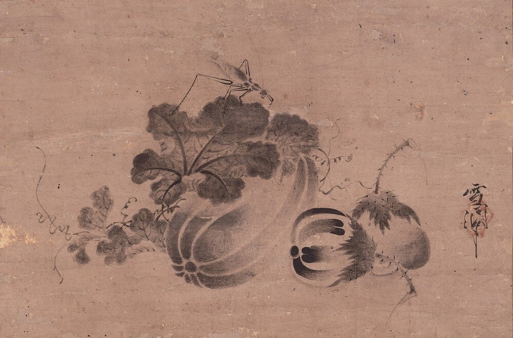 雪村の作品には、花や鳥、あるいは野菜や昆虫を描いた作品が多数あります。ここには中国の古画に倣って描いた作例もある一方、関東各地を遊歴し、山河を行脚する中で培われたであろう自然への鋭いまなざしが活かされたものもあります。本章では多彩なる墨の濃淡、優れた筆線が画面上に描き出す生命のかたちをみていきます。