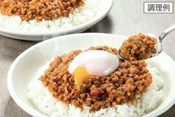 とろ~り半熟玉子と食べる具だくさんのドライカレー。スパイスが別添なのでお好みの辛さに調整してお楽しみいただけます。本品1人前で、厚生労働省が目標とする1日の野菜摂取量350gの1/3を摂取できます。