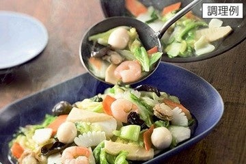 3種類の海鮮、うずらの卵など9品目の具材が入った、ご馳走感のある華やかな八宝菜です。