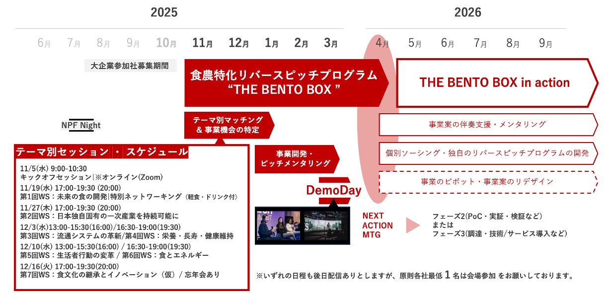一般社団法人Next Prime Food(所在地:東京都港区、代表理事:田中宏隆/有馬暁澄)は、食・農・素材・エネルギーなど食の未来領域における新規事業開発を支援する実践型共創プログラム『THE BENTO BOX』を、2025年11月より開始します。