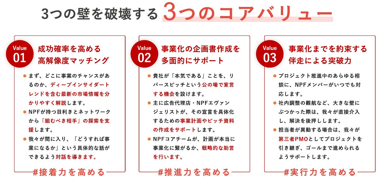 ①業界構造の把握(インプット) → ②共創テーマの特定 → ③事業化設計・検証(PoC)