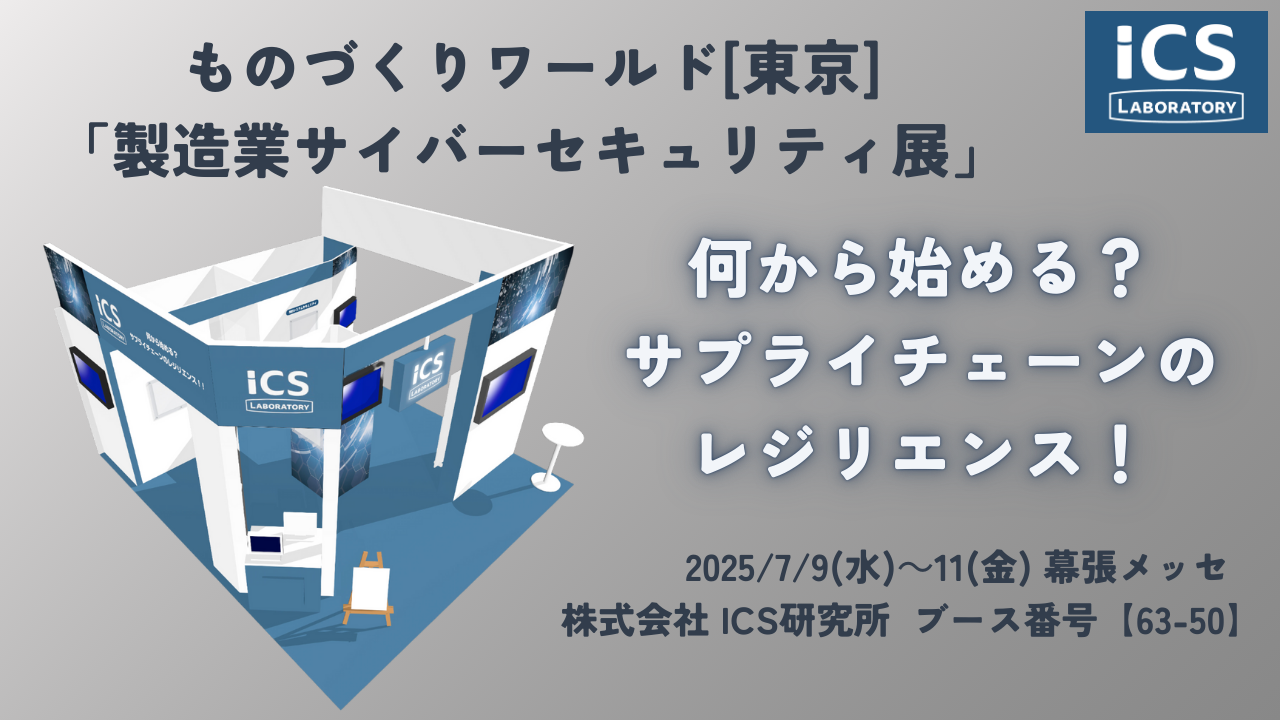 株式会社ICS研究所(本社:東京都新宿区、代表取締役社長:村上 正志)は、2025年7月9日(水)~11日(金)に幕張メッセで開催される「ものづくりワールド [東京] - 製造業サイバーセキュリティ展」に出展いたします。
