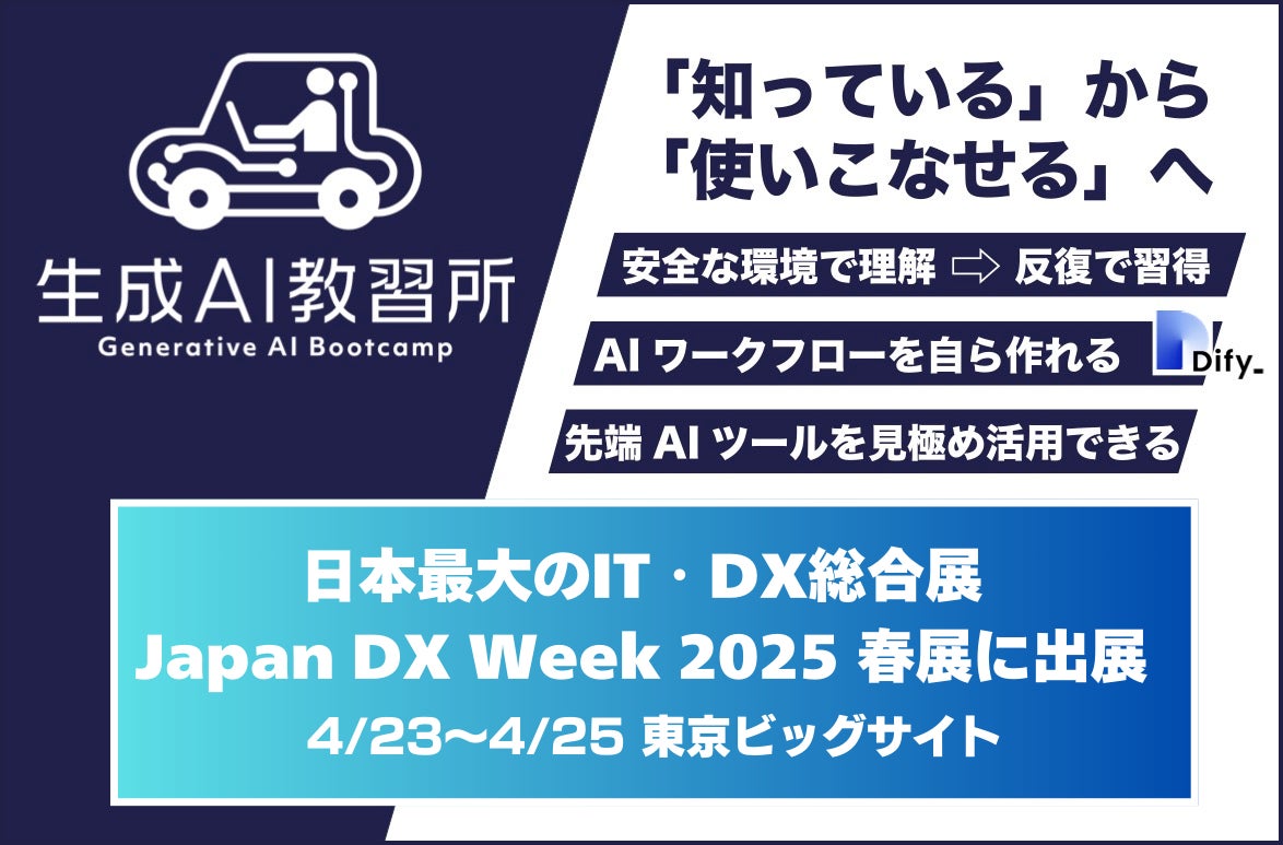 『生成AI教習所』、日本最大のDX総合展「Japan DX Week 2025 春展」に出展 (4/23〜4/25・東京ビッグサイト)